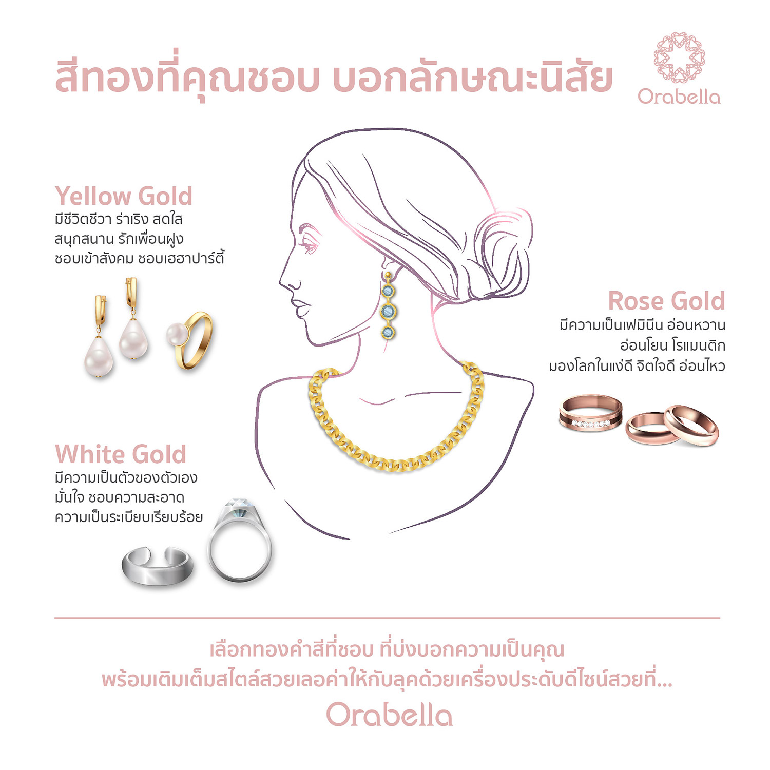 เลือกทองคำสีที่ชอบ ที่บ่งบอกความเป็นคุณ พร้อมเติมเต็มสไตล์สวยเลอค่าให้กับลุคด้วยเครื่องประดับดีไซน์สวยที่ Orabella